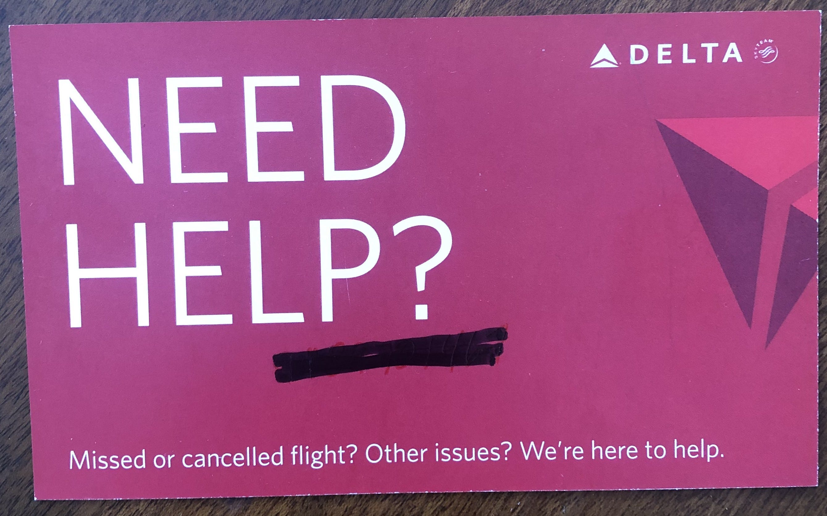 Delta gave me a deep red index card with a phone number on the back. I called the number. The Delta employee I talked to was professional and knowledgeable, and assured me: “We would not charge you.”